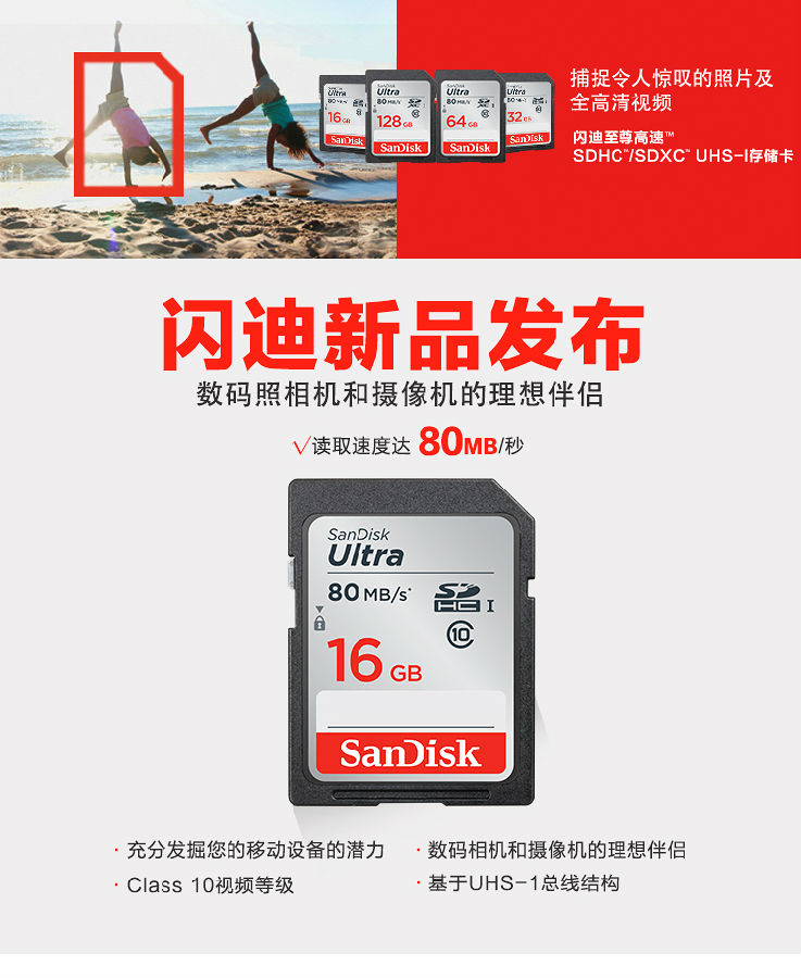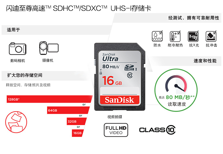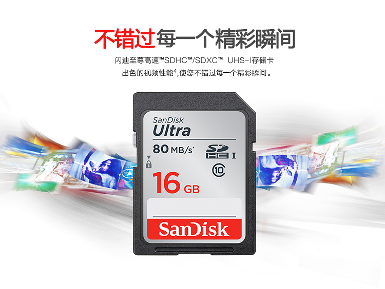 閃迪(SanDisk)16GB SD存儲卡 C10 至尊高速版  :   讀速80MB/s 捕捉全高清 數(shù)碼相機(jī)理想伴侶